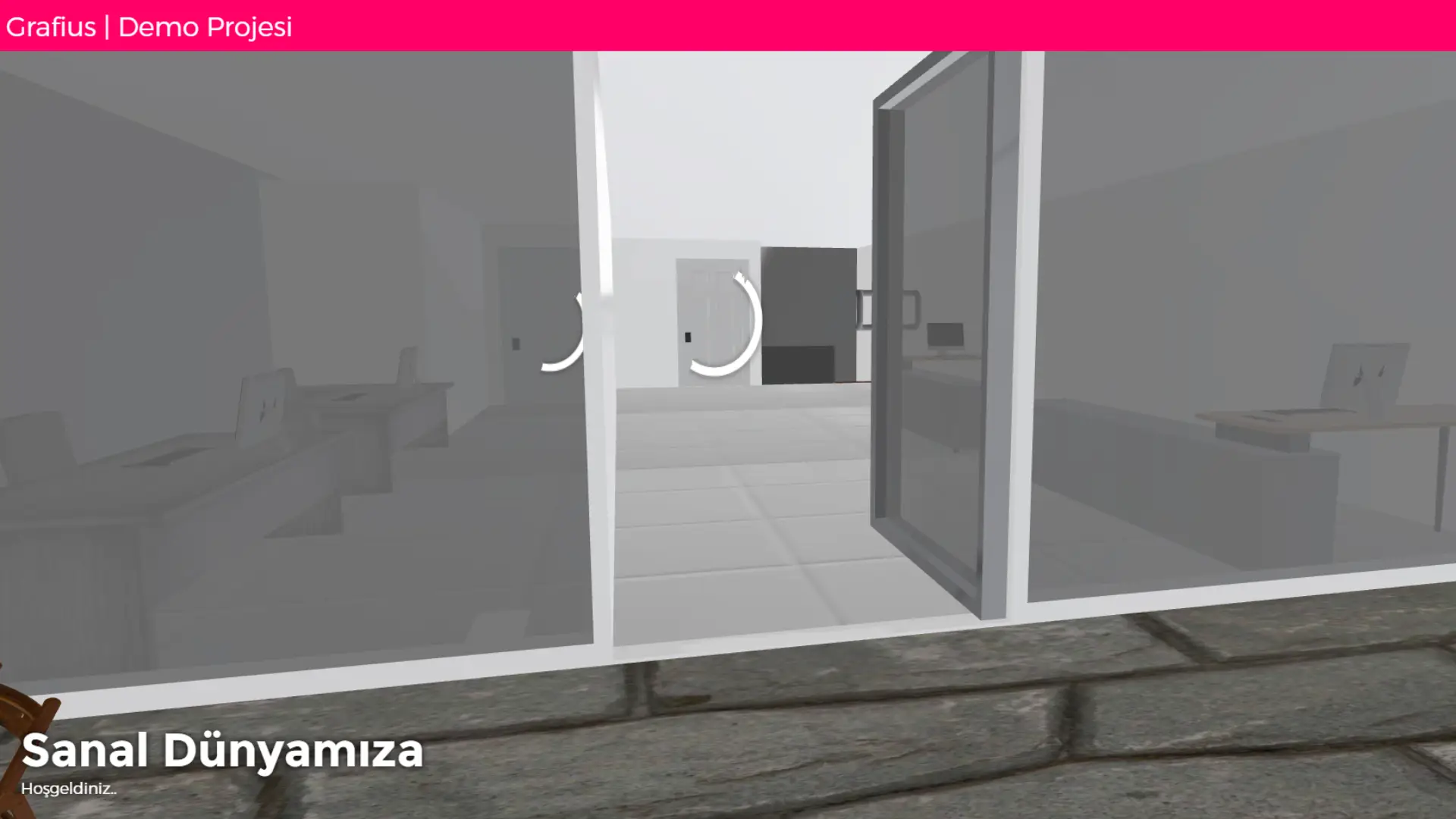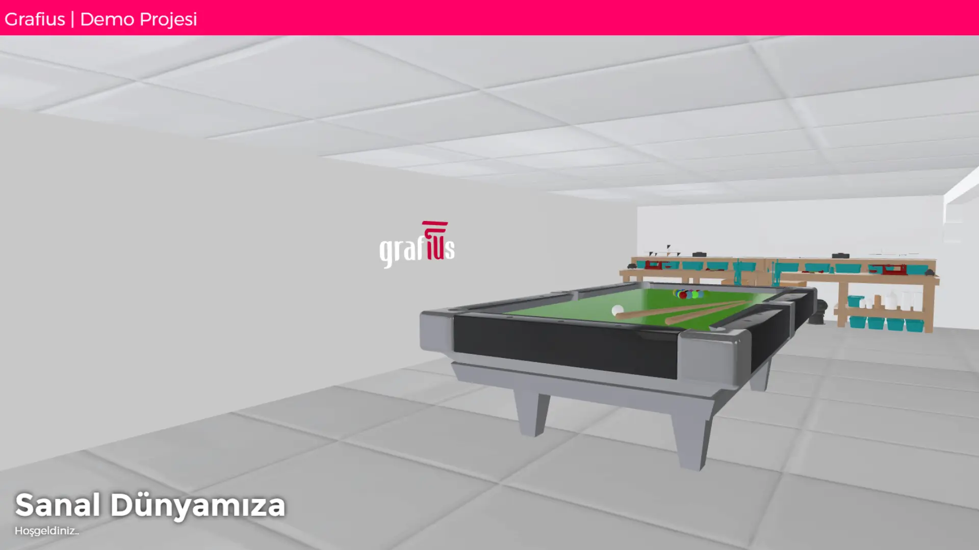 Sanal dünya projesi ofisi 3D Modelleyip w a s d hareketi ile webe dökülmüş hobi ile başlayan ön projedir. Mobilde joystick kontrolü ile hareket edip kapı gibi objelere tıklayarak animasyon oynatılan bir proje olmuştur. Proje içerisindeki bisiklete tıklayarak yine demo olan bir bisiklet modeline gidebilirsiniz.